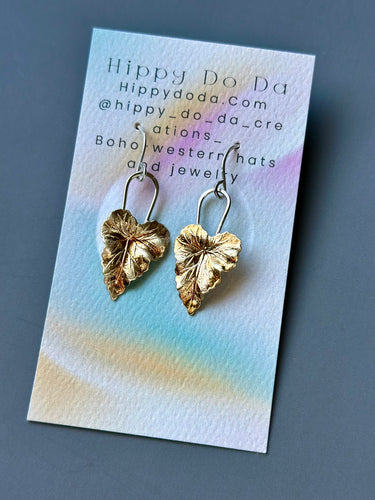 Silver and Gold, Brass Leaf and Sterling Dangle Earrings