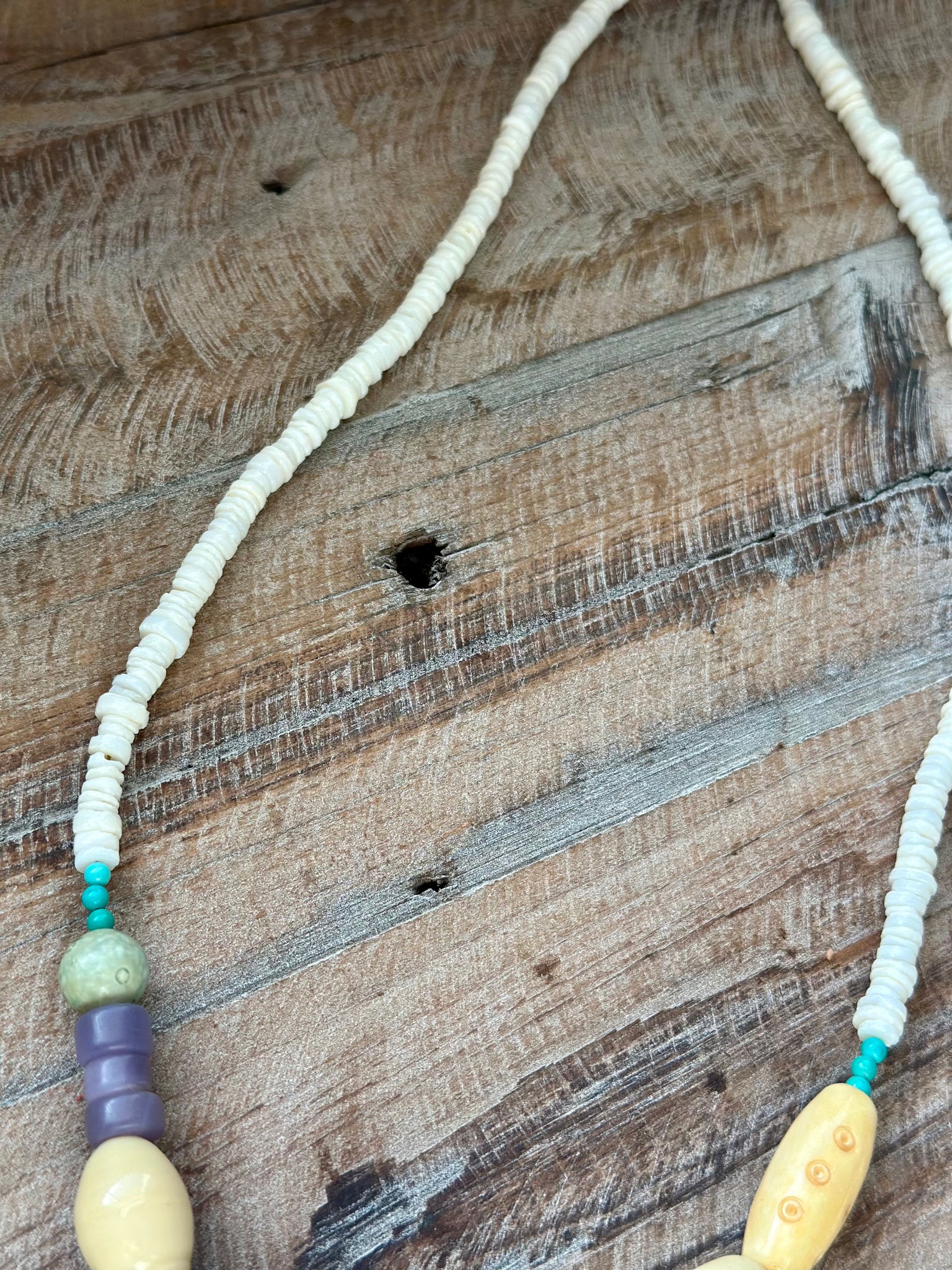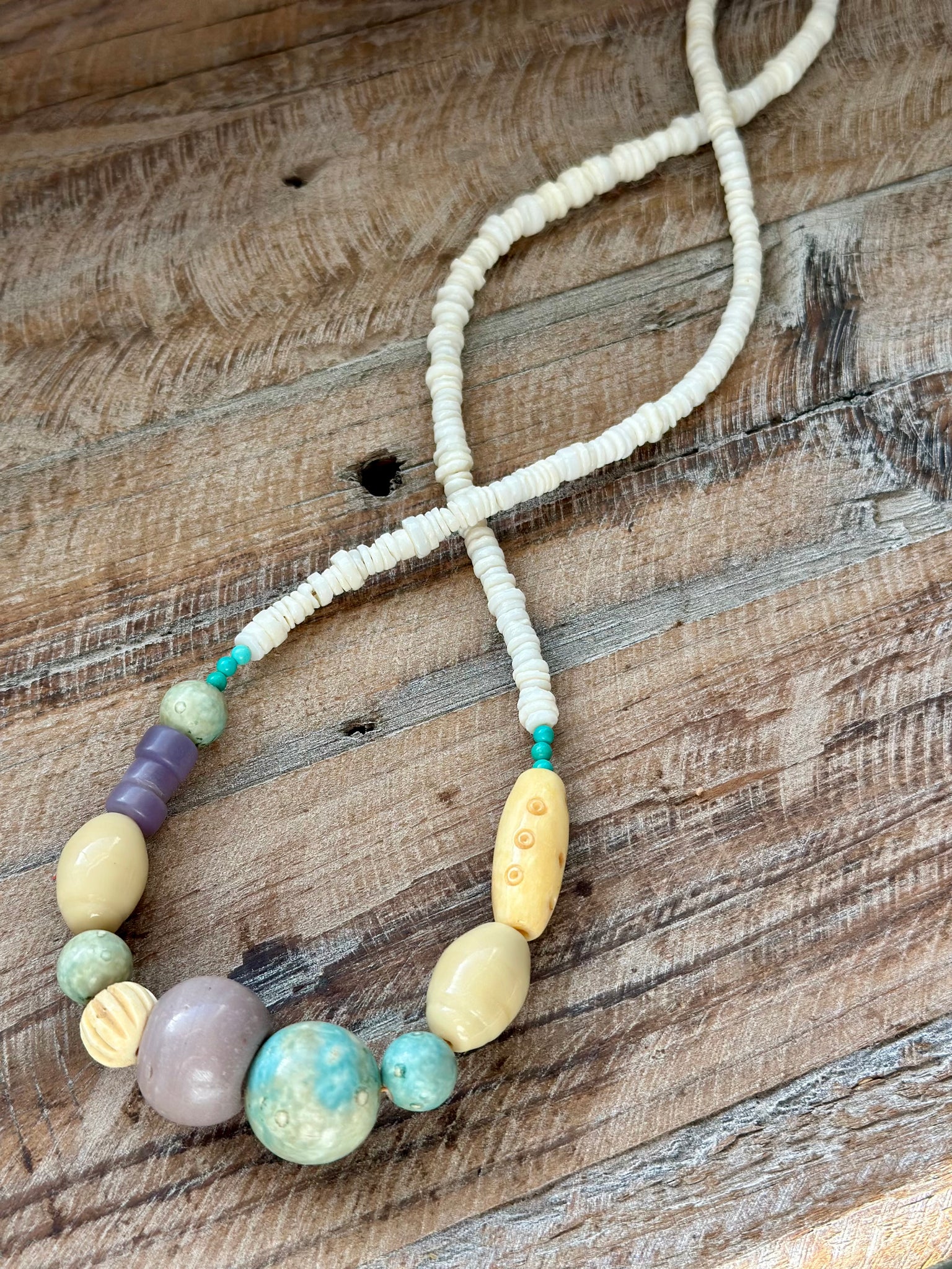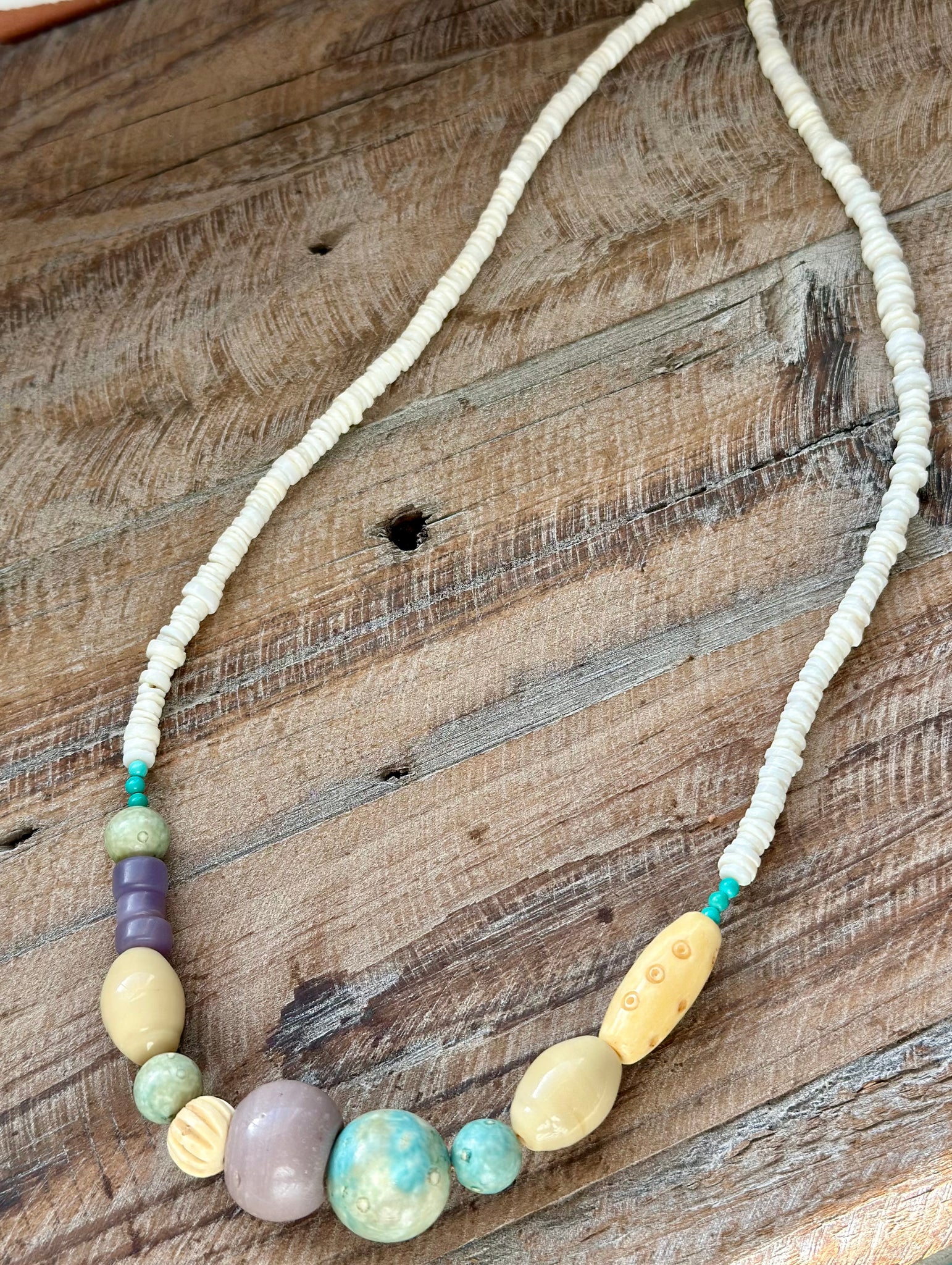 Vintage Glass, Pottery, Heishi Shell and Bone Beaded Necklace