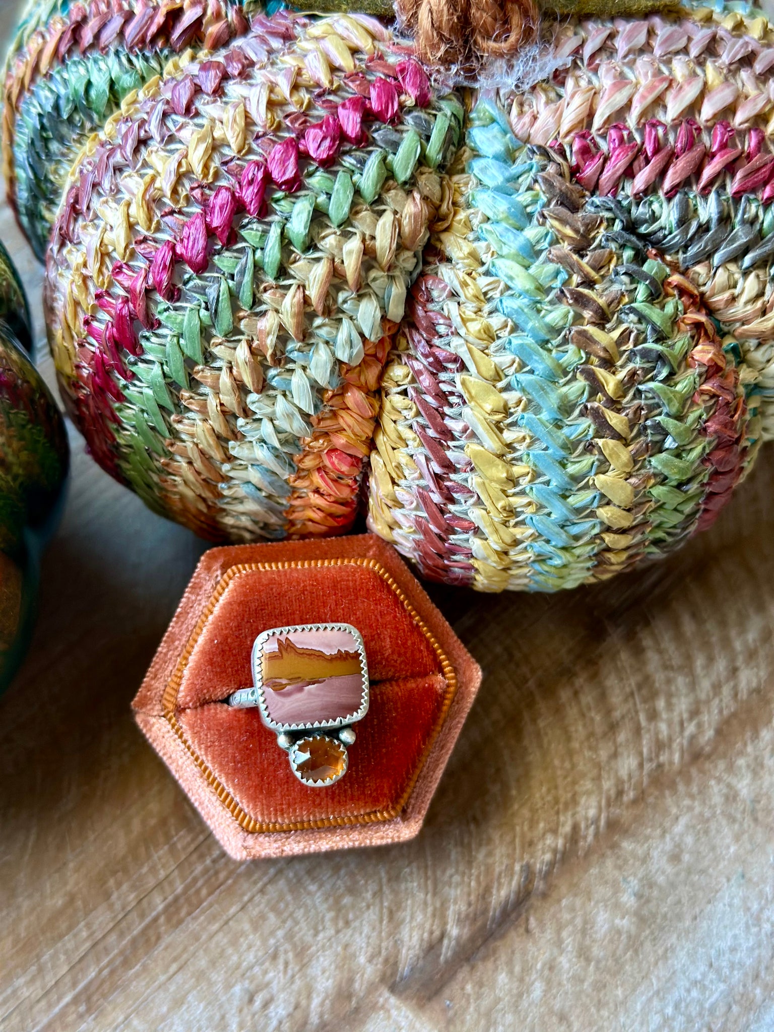 • Load image into Gallery viewer, Red Falcon Jasper and Hessonite Garnet Sterling Silver Ring, Size 8