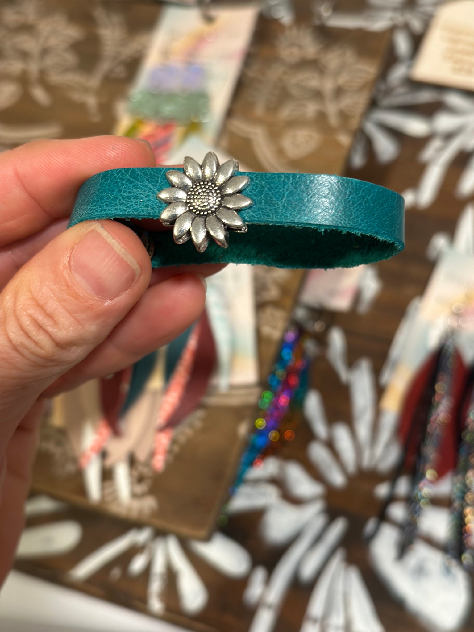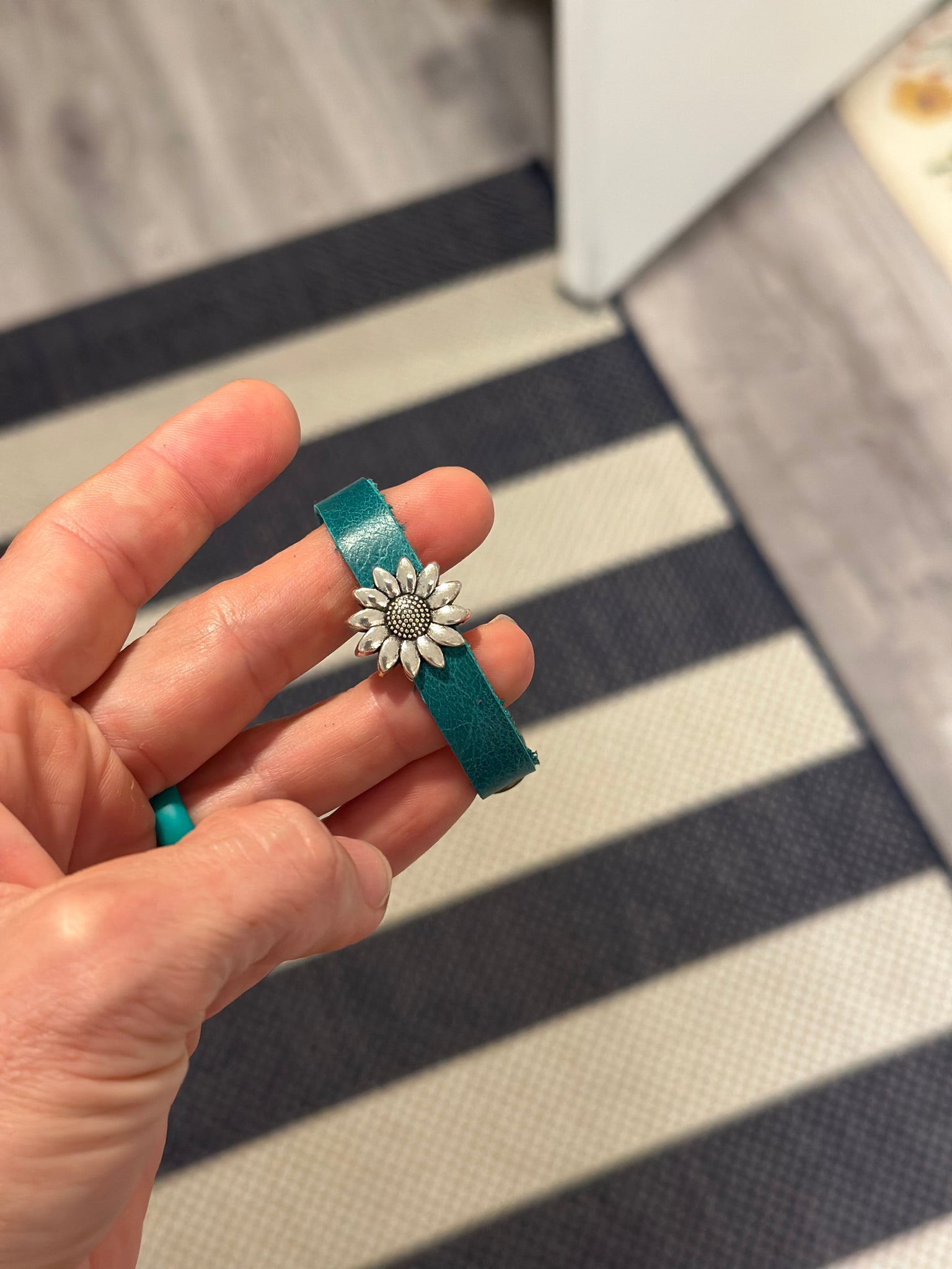 7.5 turquoise leather flower bracelet